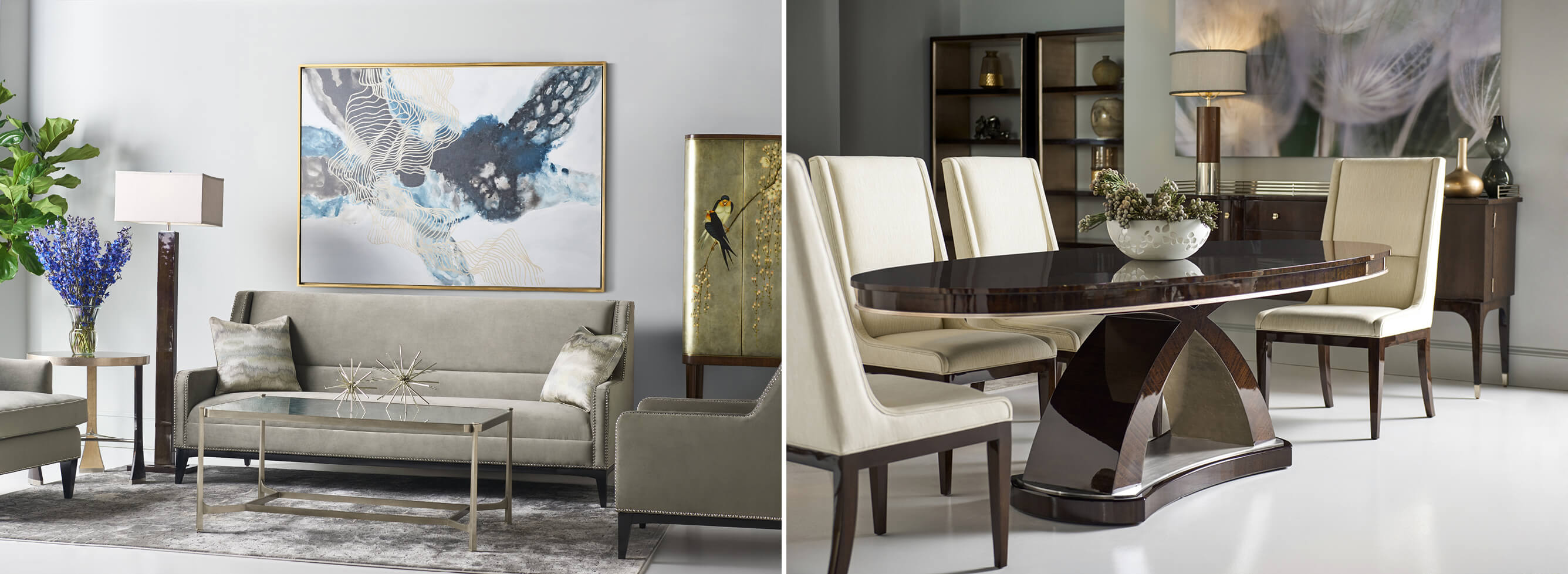 Sculpted from hardwood with a low sheen finish, these chairs are upholstered in a Jonathan Charles performance fabric Castaway...