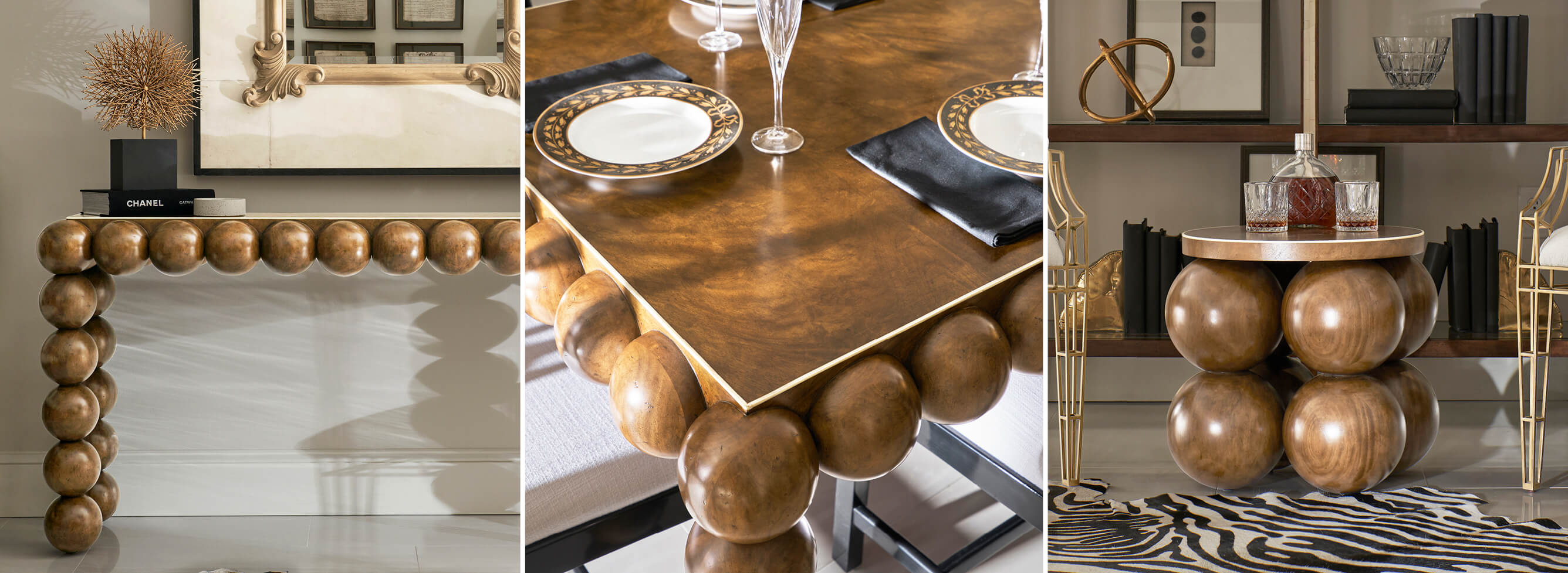 Elevate your dining experience with the perfect imaginative design and contemporary aesthetics through the Orb dining table. With its captivating spheres and luxurious finish, it becomes the centerpiece that seamlessly combines modern elegance and sophistication. The table's solid wood stacked orbs ..