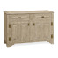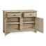 Greyed oak substantial side cabinet with stepped pyramidial panelled mouldings to the two drawer fronts and doors, and stylised iron drawer handles and strap hinges. The design based on a transitional piece of c.1600. (Old salescode: 493560-GO)