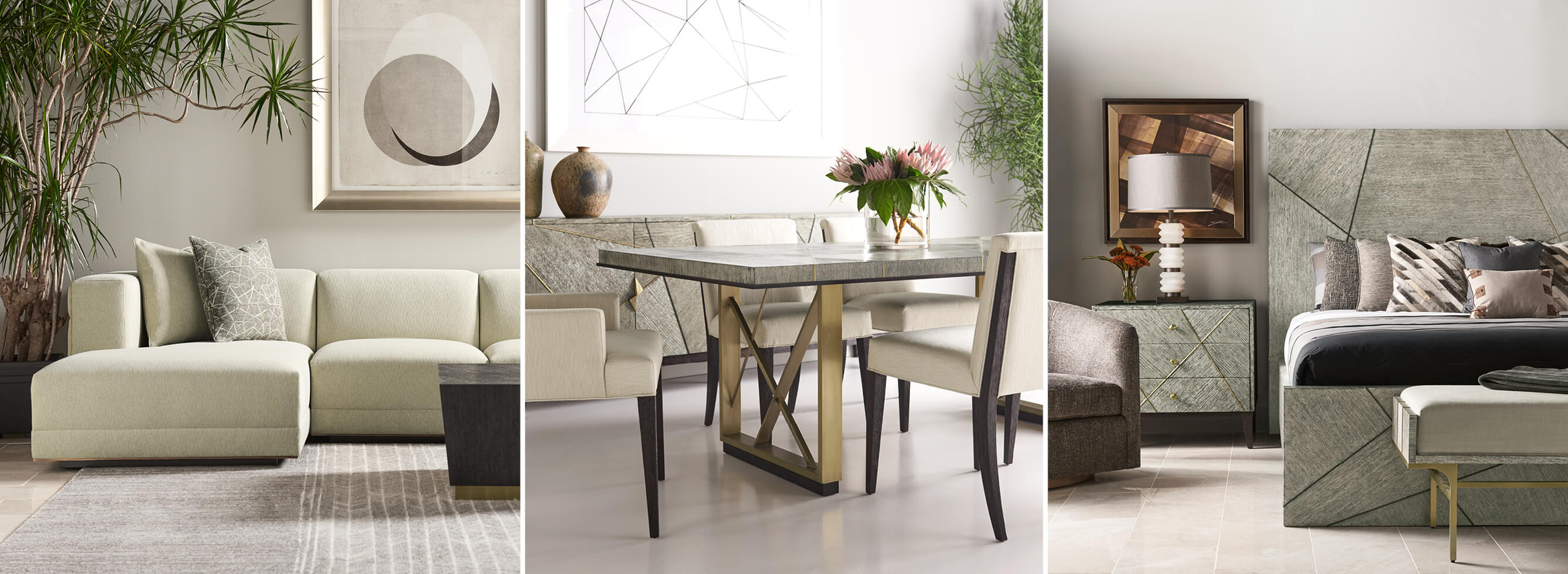 Sculpted from hardwood with a low sheen finish, these chairs are upholstered in a Jonathan Charles performance fabric Shambala...