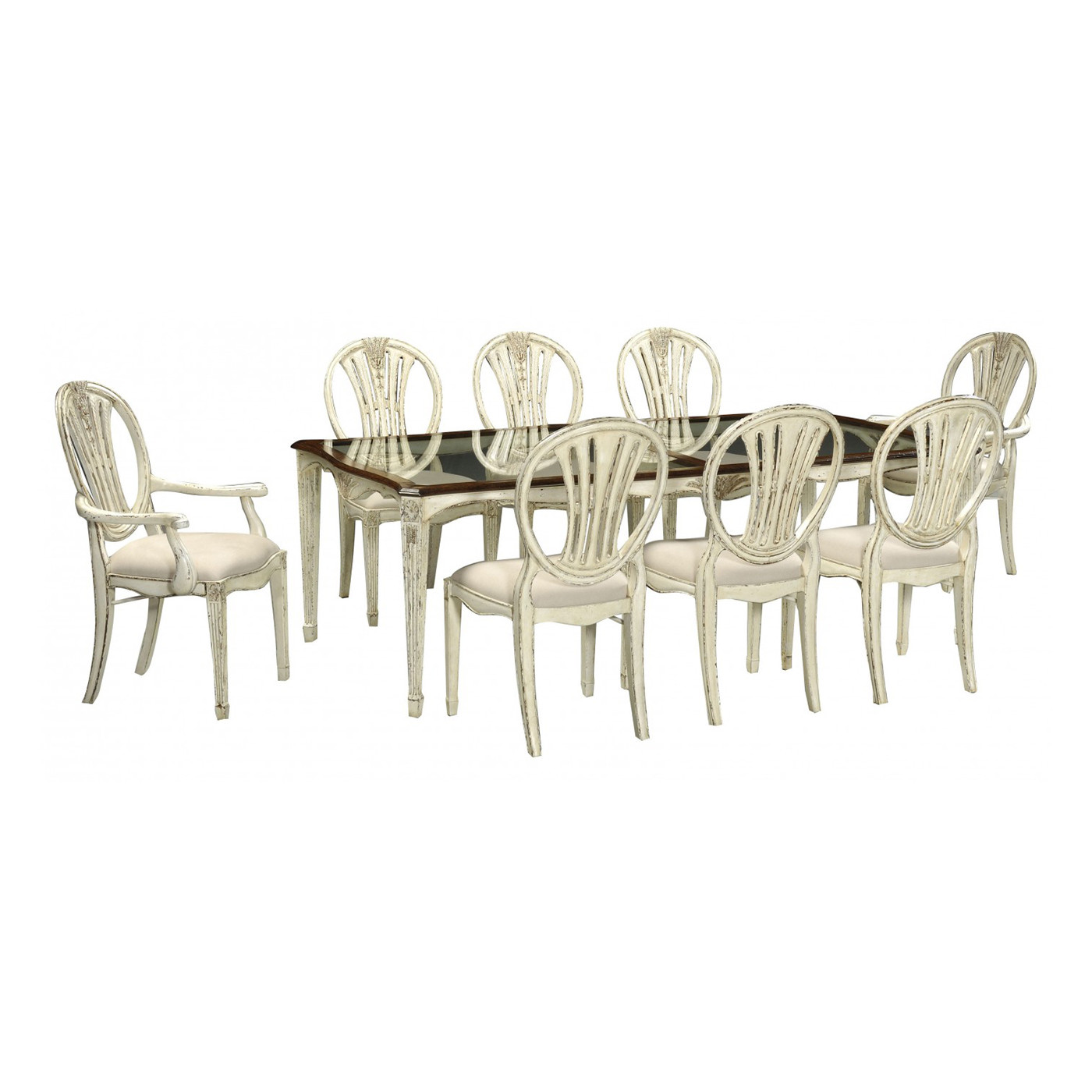 "Rub-Through" Dining Table with Glass Top (Off-White) 92"