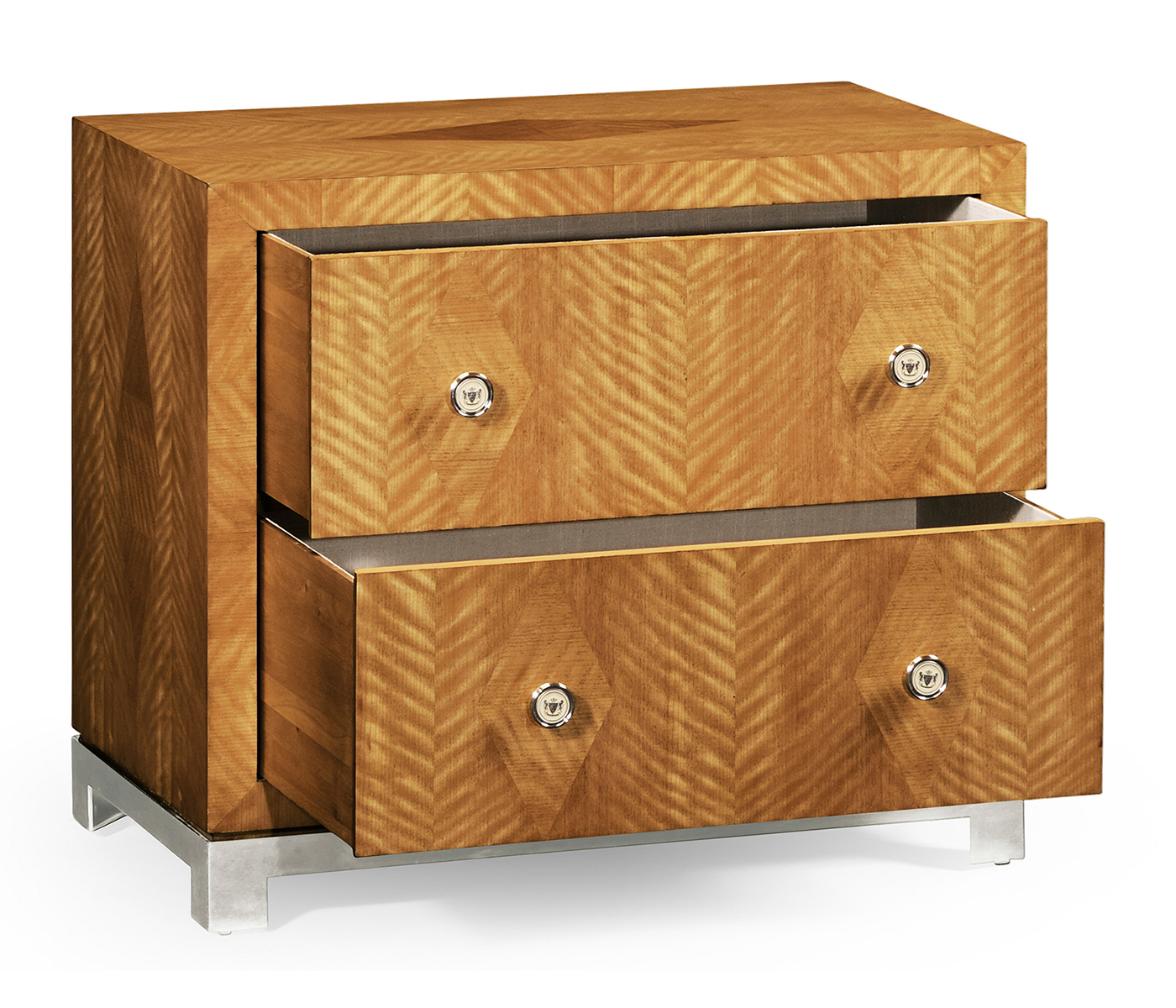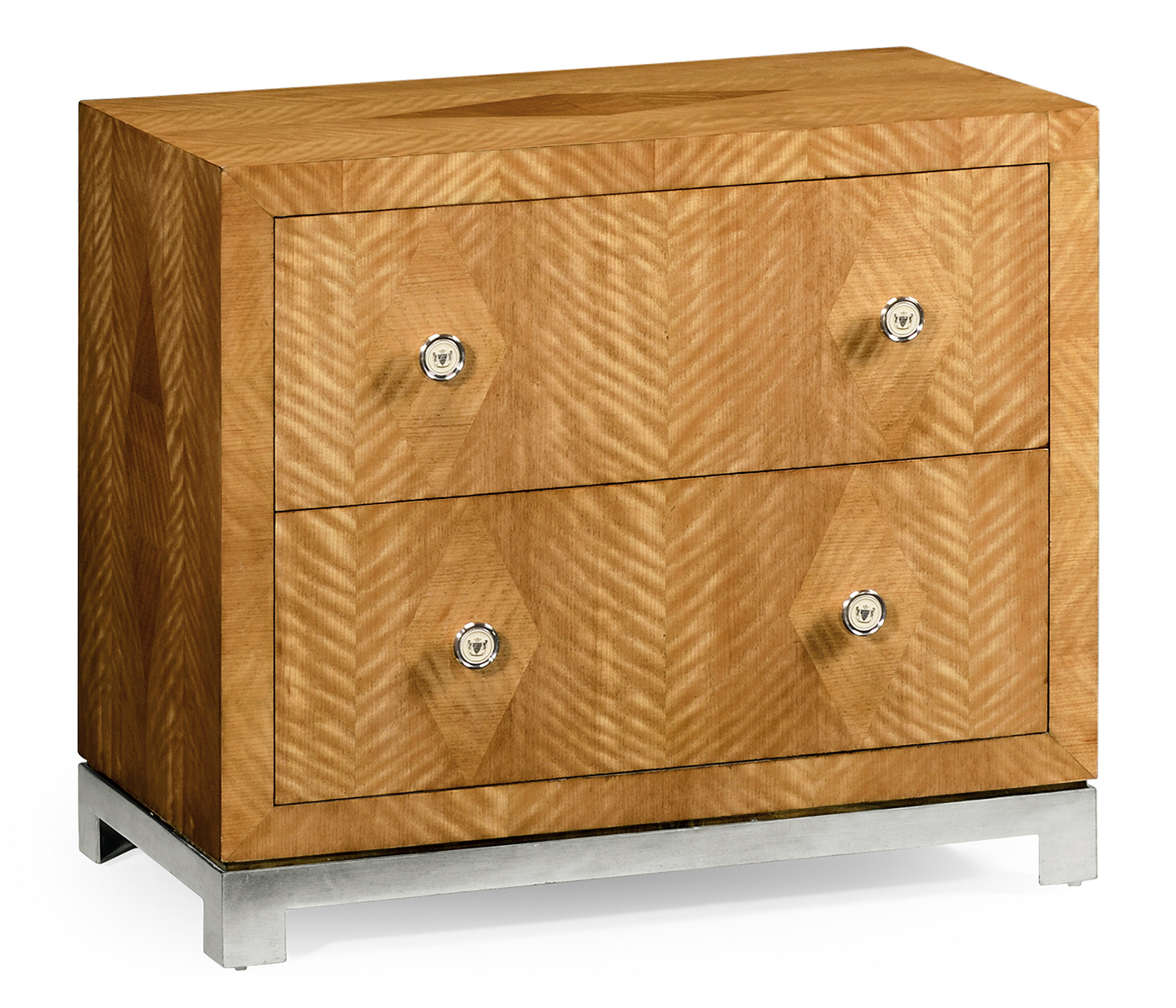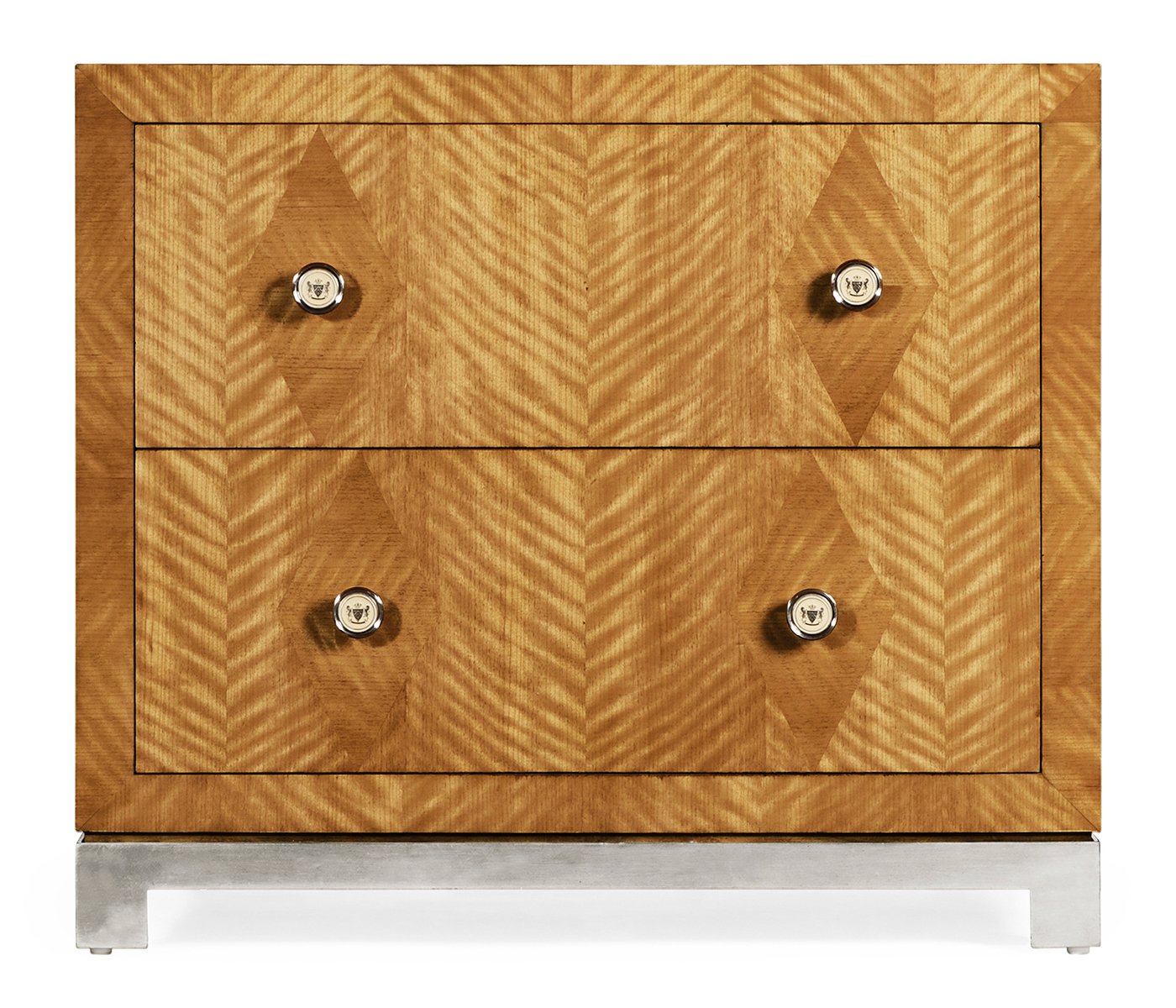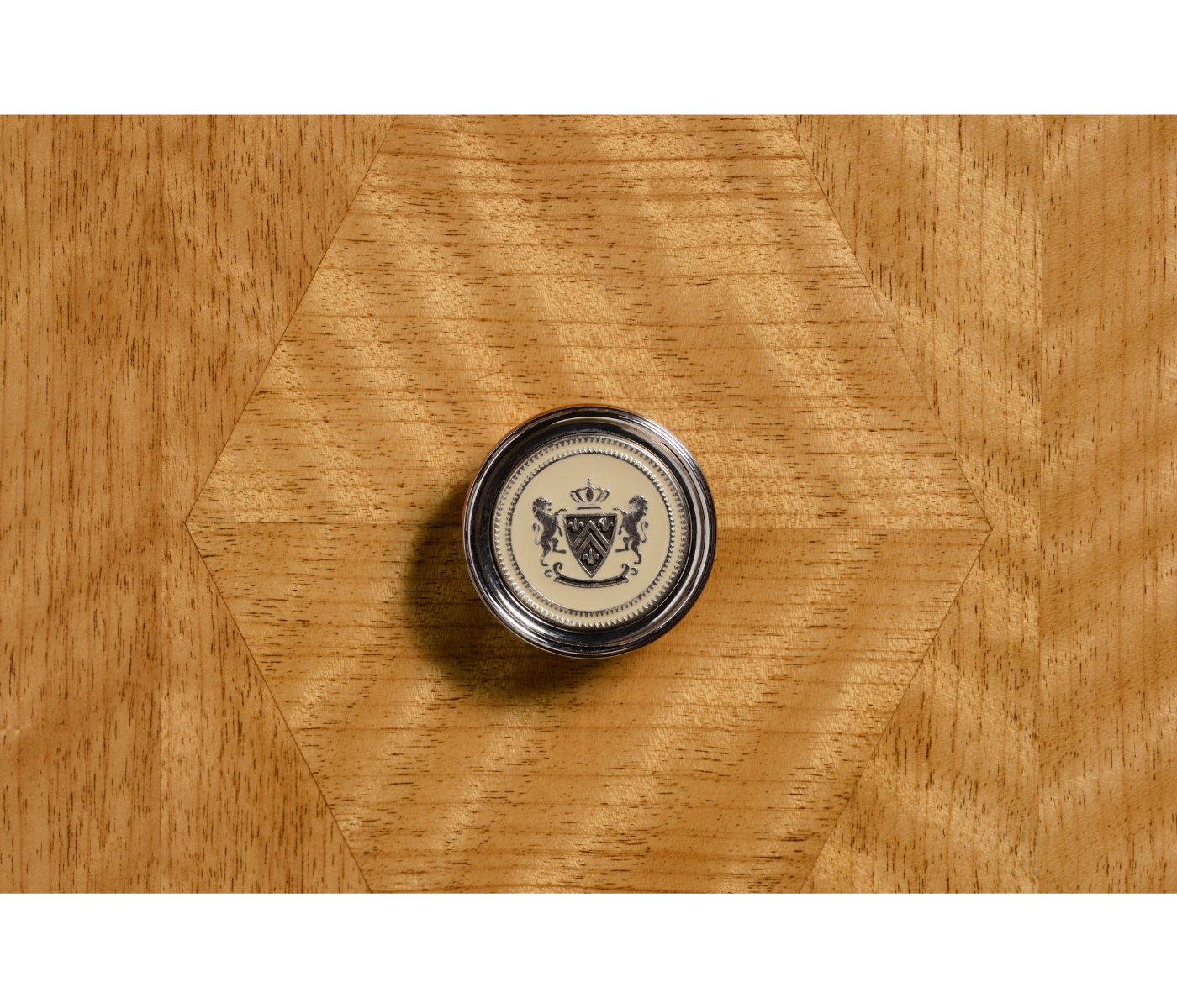 Handcrafted Italian blazer buttons are transformed into the best looking drawer pulls ever. The Satinwood marquetry combines two timeless ready to wear designs...herringbone, and argyle, the drawers are lined in linen, of course!